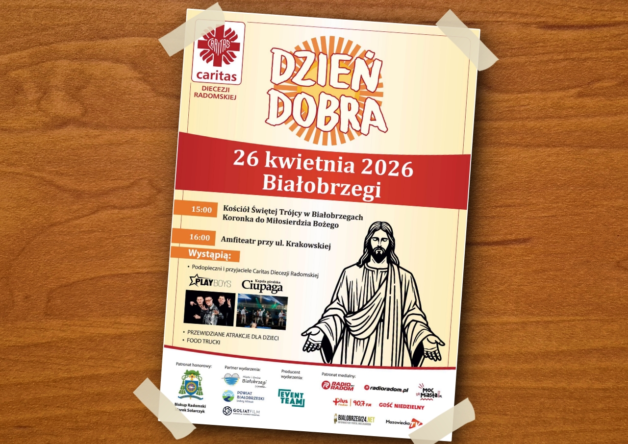 Caritas Diecezji Radomskiej ma zaszczyt zaprosić do udziału w obchodach Dnia Dobra, które odbędą się w dniu 26 kwietnia 2026 roku w Amfiteatrze w Białobrzegach.